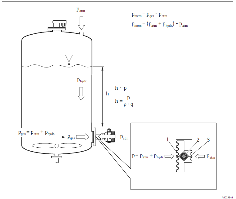 液柱的自重會產生靜壓力。密度恒定時,靜壓力僅取決于液柱高度h。CONTITE ™測量單元基于表壓傳感器原理測量,是Deltapilot M 的核心測量部件。與傳統(tǒng)表壓傳感器相比,CONTITE ™測量單元的精準測量部件(2) 被過程隔離膜片(3) 和后隔離膜片(1) 密封保護。CONTITE ™測量單元帶全密封焊接測量部件,具有優(yōu)越的抗冷凝和抗氣體腐蝕能力。填充液將過程隔離膜片上的壓力傳輸至測量部件,無任何壓損。溫度波動會導致溫度測量值變化,電子插件可以對此產生的測量誤差進行補償。