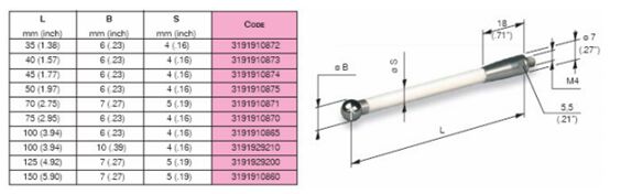MARPOSS根據(jù)客戶需求可以提供陶瓷和鋼兩種材質(zhì)的測桿。在選擇測桿的時候,應(yīng)盡可能使用最短的測桿當(dāng)必須使用長的測桿時,最好選擇陶瓷材料的測桿,盡可能避免使用延長測桿,特殊測桿可以特殊訂購。