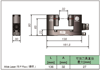 • Pico(微型)聚焦式激光,側(cè)出線或底部出線,電纜可直 連或用90°接頭,延長(zhǎng)線: -10,20,30m直連或用90°接頭信號(hào)線 -136mm安裝座
