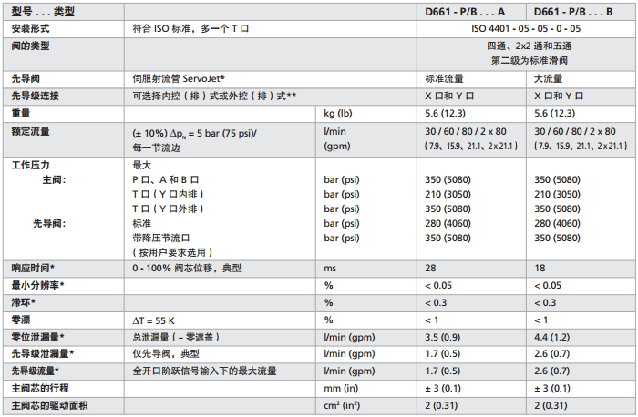 MOOG比例閥D660系列是應(yīng)用于兩通、三通、四通和五通的節(jié)流型流量控制閥。這些閥適用于電液位置、速度、壓力或電液力控制系統(tǒng)。D660系列控制電路革新,采用了SMD技術(shù)和24V DC供電電源。超大流量閥體流道設(shè)計(jì),并可選擇使用X和Y口進(jìn)行先導(dǎo)級(jí)外控、外泄。D660系列比例閥有二級(jí)和三級(jí)構(gòu)造兩種形式。二級(jí)比例閥主要運(yùn)用在小信號(hào)時(shí)要求較高分辨率和較高動(dòng)態(tài)響應(yīng)的場(chǎng)合中,而三級(jí)比例閥適用于在較大指令信號(hào)下有較高動(dòng)態(tài)響應(yīng)要求的場(chǎng)合,比例閥結(jié)合了快速響應(yīng)的先導(dǎo)級(jí)、合理的滑閥驅(qū)動(dòng)面積和集成電路板功能,所以D660系列比例閥具有最佳的控制性能。